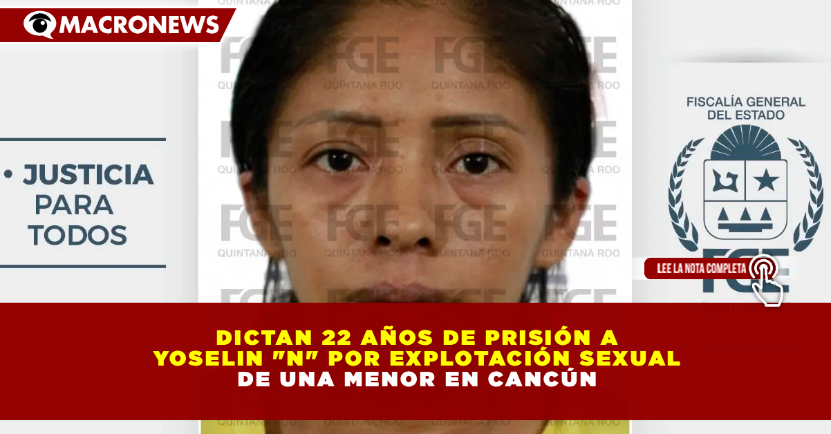 CANCÚN, Q. ROO. – La Fiscalía General del Estado (FGE) obtuvo una sentencia condenatoria de 22 años de prisión contra Yoselin Yamilex Domingo López, hallada culpable del delito de trata de personas en su modalidad de prostitución ajena. Los hechos, ocurridos en 2023, involucraron a una víctima menor de edad cuya identidad se mantiene bajo reserva, quien fue engañada bajo la promesa de una mejor calidad de vida.