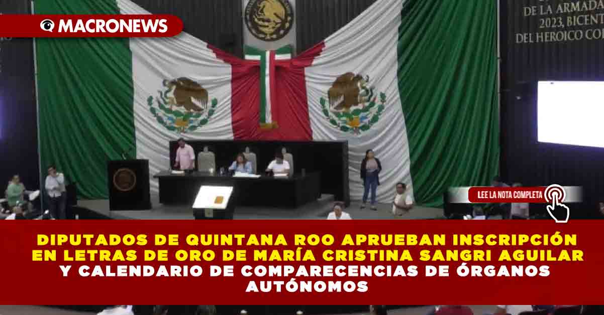 DIPUTADOS DE QUINTANA ROO APRUEBAN INSCRIPCIÓN EN LETRAS DE ORO DE MARÍA CRISTINA SANGRI AGUILAR Y CALENDARIO DE COMPARECENCIAS DE ÓRGANOS AUTÓNOMOS