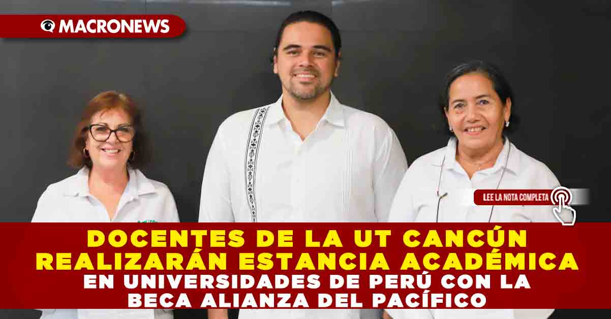 Redacción Macronews por Renán Moguel.- Las profesoras Verónica Bolaños López y María del Socorro Castillo Castillo, de la división Económico-Administrativa de la Universidad Tecnológica de Cancún BIS, fueron seleccionadas para participar en la Beca Alianza del Pacífico 2025, que les permitirá realizar una estancia académica en universidades de Perú.