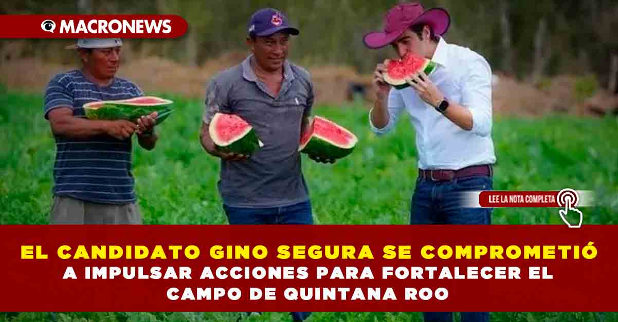 Gino Segura, candidato de la coalición “Sigamos Haciendo Historia” al Senado de la República, se comprometió este lunes a impulsar acciones legislativas que fortalezcan al campo de Quintana Roo.