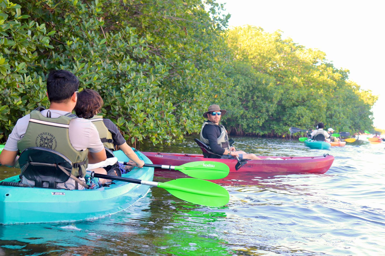 La jornada se realizó a bordo de kayaks, lo que permitió a los voluntarios acceder a zonas del manglar de difícil alcance para retirar residuos que afectan gravemente a la biodiversidad.
