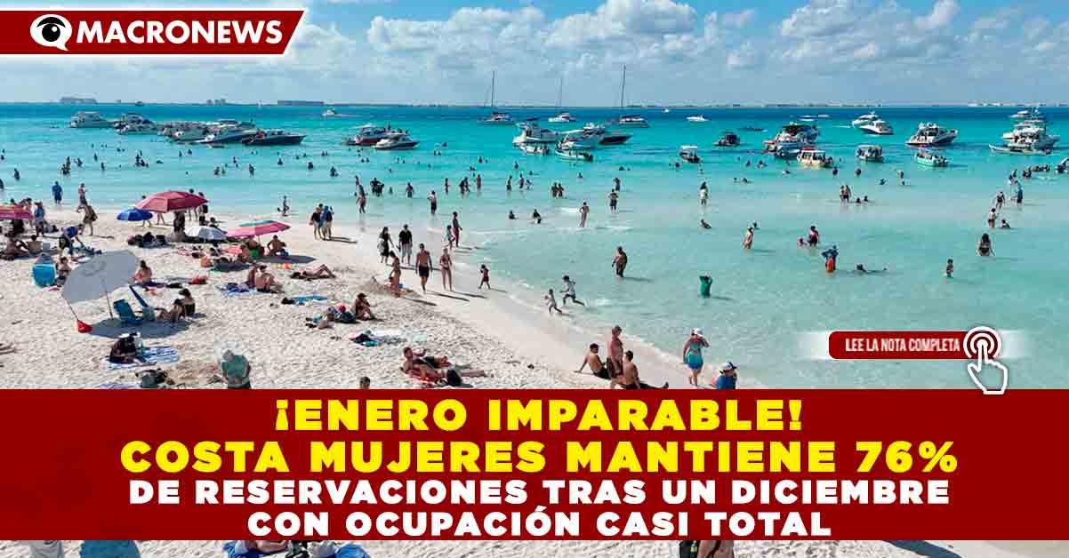 Redacción Macronews por Renán Moguel.- La Asociación de Hoteles de Costa Mujeres informó que este destino encabezó la demanda turística en Quintana Roo durante el mes de diciembre, al alcanzar una ocupación hotelera promedio del 88 por ciento en el periodo de Navidad y Año Nuevo.