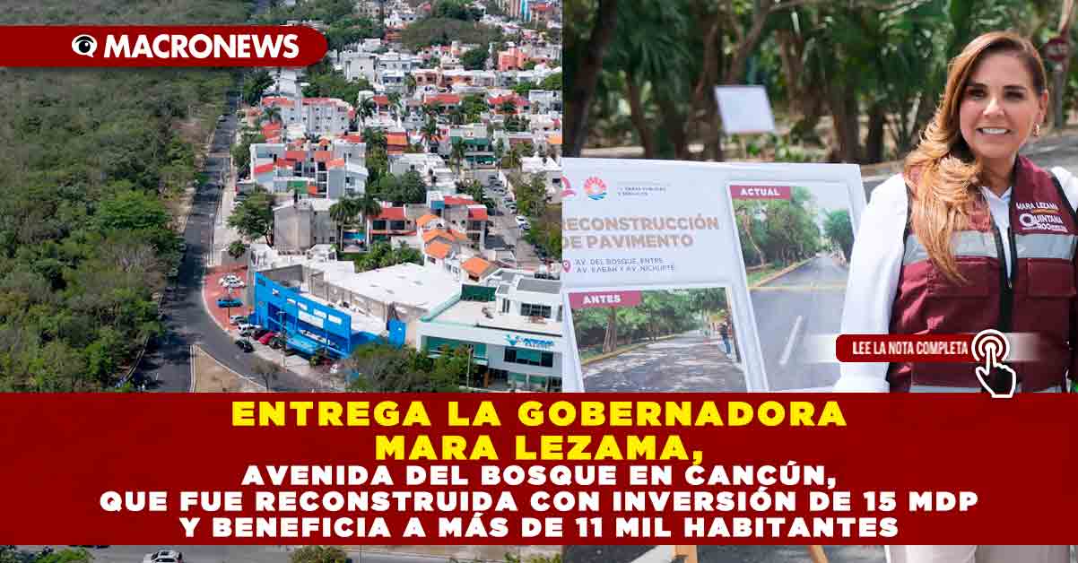 Cancún.- La gobernadora Mara Lezama Espinosa entrego a los cancunenses la reconstrucción de pavimento de la avenida Del Bosque, entre avenidas Kabah y Nichupté, una obra de calidad que mejora la movilidad vial en Cancún.