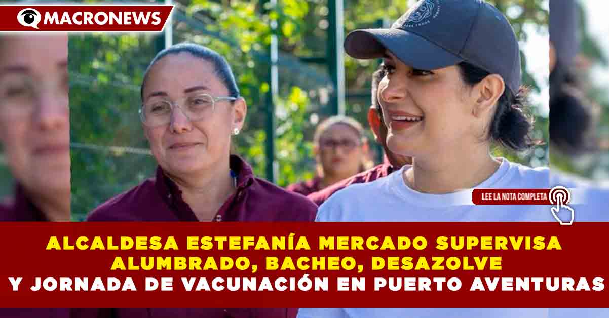 Redacción Macronews.- Solidaridad, Quintana Roo.— La presidenta municipal de Playa del Carmen, Estefanía Mercado, supervisó este miércoles los trabajos realizados por la “Mega Brigada de Servicios Públicos” en Puerto Aventuras, enfocándose en labores de alumbrado, bacheo, desazolve y vacunación en el Centro de Salud local.