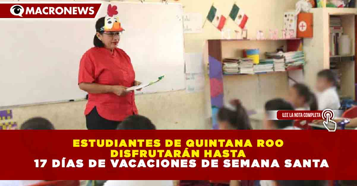 Redacción Macronews.- La Secretaría de Educación Pública (SEP) confirmó que las vacaciones de Semana Santa 2026 para alumnos de preescolar, primaria y secundaria en Quintana Roo y el resto del país iniciarán el lunes 30 de marzo y concluirán el viernes 10 de abril, con regreso a clases el lunes 13 de abril.