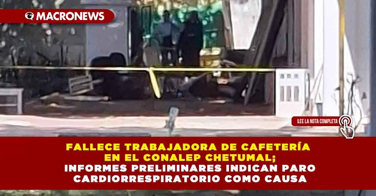 FALLECE TRABAJADORA DE CAFETERÍA EN EL CONALEP CHETUMAL; INFORMES PRELIMINARES INDICAN PARO CARDIORRESPIRATORIO COMO CAUSA