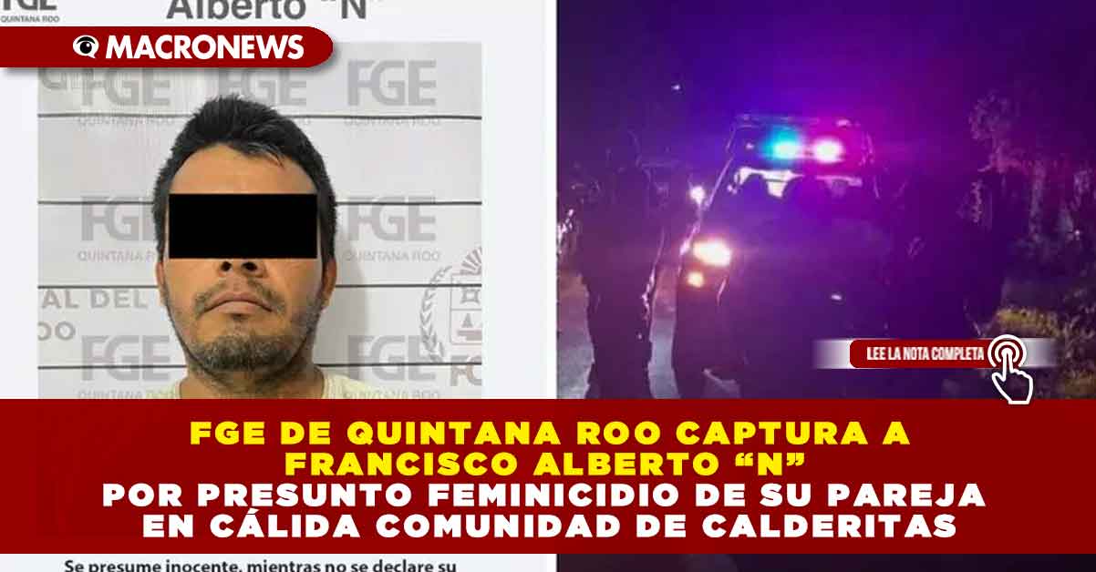 La Fiscalía General del Estado (FGE) de Quintana Roo informó este lunes 6 de octubre la captura de un hombre identificado como Francisco Alberto “N”, por su presunta participación en el delito de feminicidio cometido en agravio de una mujer en el municipio de Othón P. Blanco.