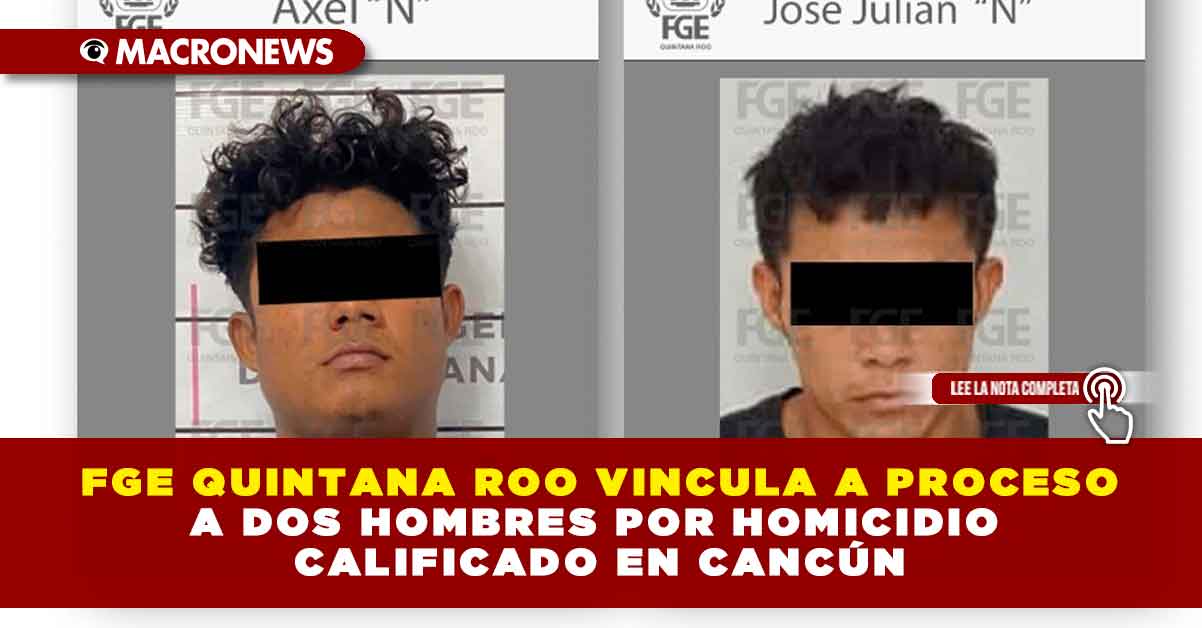 La Fiscalía General del Estado (FGE) de Quintana Roo informó que un Juez de Control vinculó a proceso a Axel “N” y José Julián “N” por su probable participación en el delito de homicidio calificado, en agravio de una víctima de identidad reservada, tras las pruebas presentadas por la Fiscalía Especializada en Combate al Delito de Homicidio.