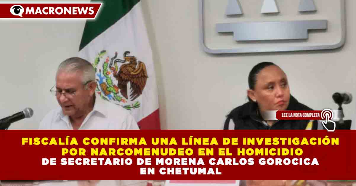 Redacción Macronews.- La Fiscalía General del Estado confirmó que el homicidio de Carlos Gorocica Hernández, cuyo cuerpo fue localizado sin vida el pasado viernes en Chetumal, mantiene como principal línea de investigación su presunta relación con actividades de narcomenudeo, informó el fiscal general, Raciel López Salazar.