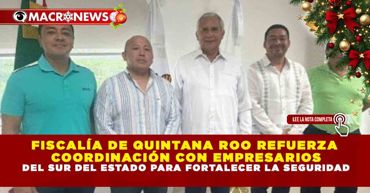 Con el objetivo de fortalecer la coordinación en materia de seguridad y procuración de justicia, la Fiscalía General del Estado de Quintana Roo sostuvo un encuentro con representantes del sector empresarial de la zona sur, en el que se abordaron temas relacionados con la protección de los negocios y el impulso a la actividad económica.
