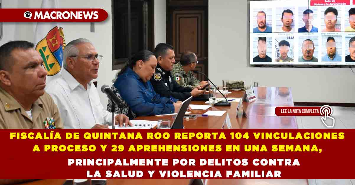 Redacción Macronews.- En el marco de la estrategia estatal de seguridad y procuración de justicia, la Fiscalía General del Estado de Quintana Roo, encabezada por Raciel López Salazar, reportó resultados contundentes entre el 11 y el 17 de agosto de 2025. Durante ese periodo, el organismo obtuvo un total de 104 vinculaciones a proceso, cumplimentó 29 órdenes de aprehensión y ejecutó 16 cateos por diversos delitos, consolidando avances significativos en el combate a la impunidad.