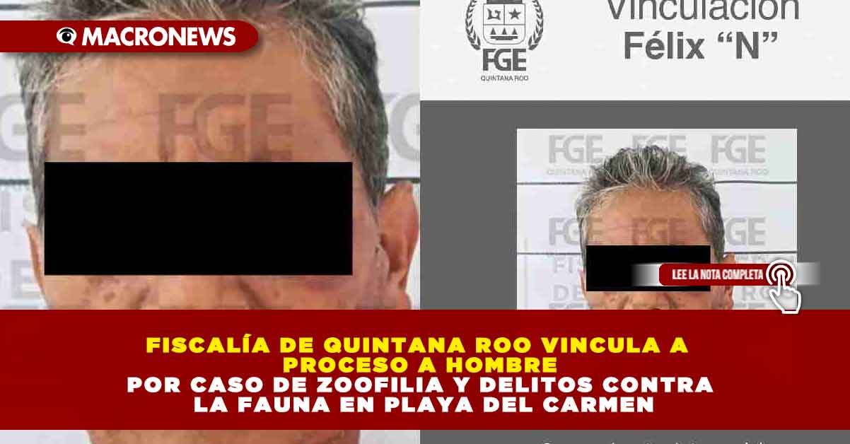 La Fiscalía General del Estado de Quintana Roo obtuvo la vinculación a proceso contra un hombre señalado por su presunta participación en un caso de zoofilia ocurrido en Playa del Carmen.