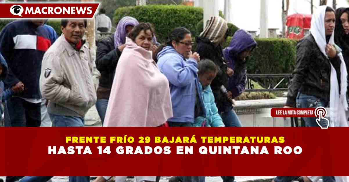 Redacción Macronews.- El frente frío número 29 provocará un descenso significativo de temperaturas en Quintana Roo, con valores mínimos que podrían alcanzar los 14 grados, además de rachas de viento y condiciones de cielo nublado en diversas zonas del estado, de acuerdo con los pronósticos meteorológicos.