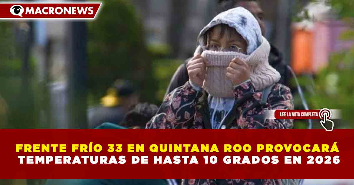 Redacción Macronews.- El frente frío número 33 impactará a Quintana Roo, generando un descenso significativo de temperaturas que podrían alcanzar los 10 grados centígrados, principalmente durante la madrugada y primeras horas del día, de acuerdo con reportes meteorológicos.