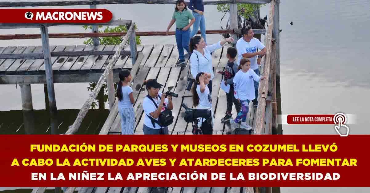 Cozumel.- La Fundación de Parques y Museos de Cozumel (FPMC) llevó a cabo la actividad “Aves y Atardeceres”, una experiencia educativa única de observación de aves y apreciación de la biodiversidad, que tuvo lugar en el Parque Ecológico Estatal Laguna Colombia, en el Parque Ecoturístico Punta Sur.