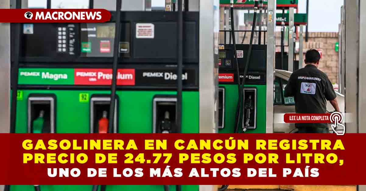 Redacción Macronews.- Una estación de servicio ubicada en las inmediaciones del Aeropuerto Internacional de Cancún fue señalada por presentar uno de los precios más elevados de gasolina en México. El litro se vende en 24.77 pesos, con una ganancia aproximada de 2.91 pesos por litro, cifras que superan los márgenes promedio nacionales, donde el precio regular se mantiene en torno a 23.60 pesos.