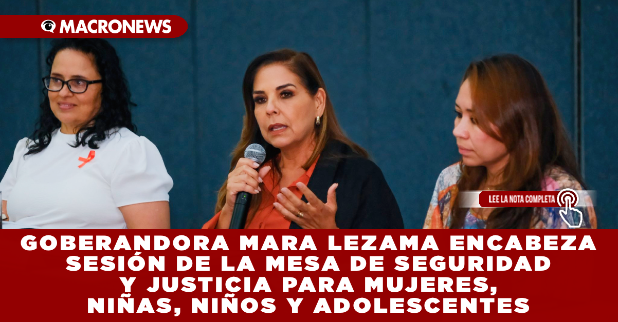 Cancún, Q.Roo. La gobernadora Mara Lezama Espinosa encabezó la última sesión del año de la Mesa de Seguridad y Justicia para Mujeres, Niñas, Niños y Adolescentes, donde se revisaron los avances en las acciones destinadas a proteger a este sector de la población.