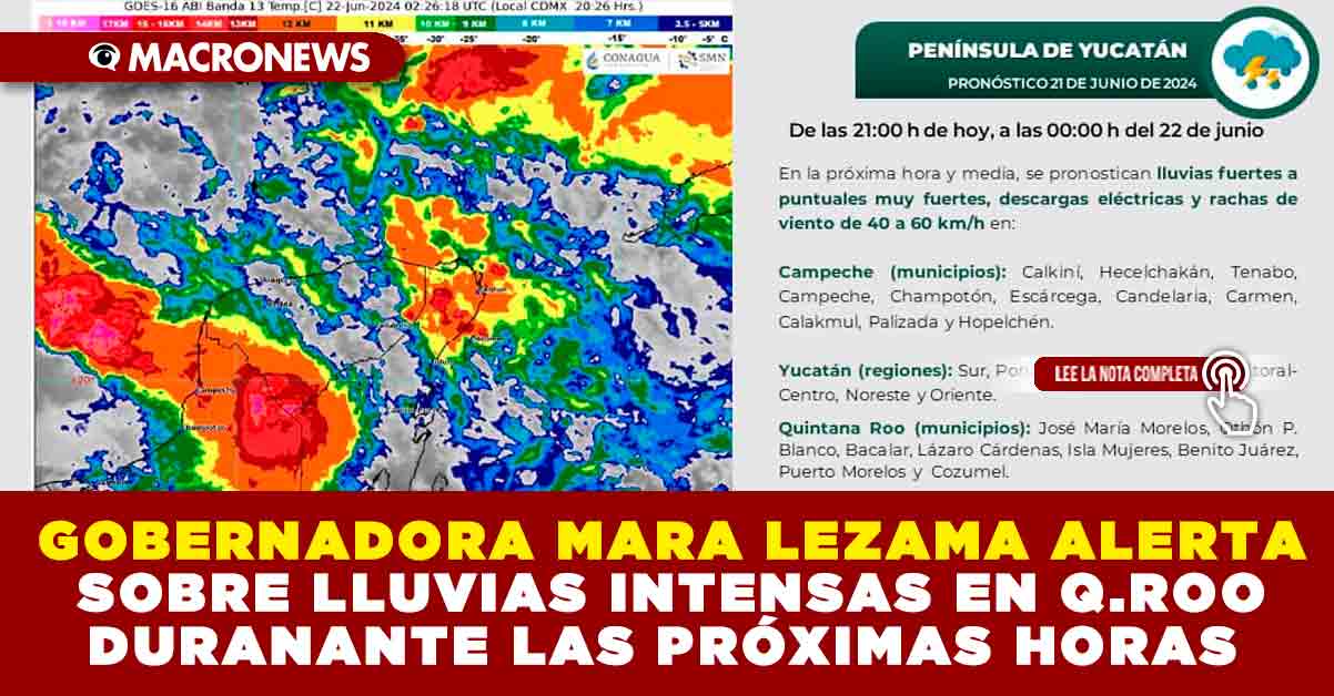 Para más detalles sobre el pronóstico y las medidas de seguridad recomendadas, se puede consultar los canales oficiales de la Gobernadora Mara Lezama y de la Coordinación Estatal de Protección Civil de Quintana Roo en redes sociales.