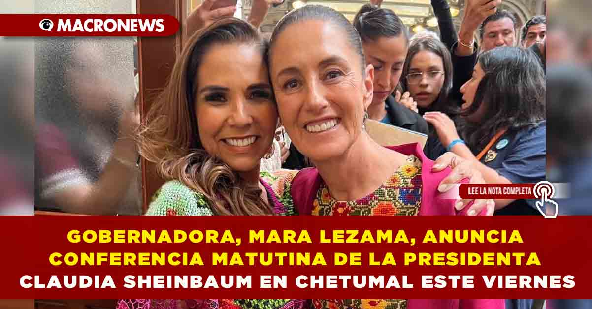 Redacción Macronews.- En un anuncio de alto impacto político y regional, la gobernadora de Quintana Roo, Mara Lezama Espinosa, confirmó que la presidenta de México, Claudia Sheinbaum Pardo, realizará su conferencia matutina este viernes desde la ciudad de Chetumal, capital del estado. La información fue compartida durante el programa “La Voz del Pueblo”, transmitido por redes sociales y radiodifusoras locales, donde Lezama destacó que este evento forma parte de una gira de trabajo que posteriormente llevará a la mandataria federal a Guatemala y, más tarde, a Calakmul, Campeche, para un encuentro trilateral con el primer ministro de Belice, Johny Briceño.