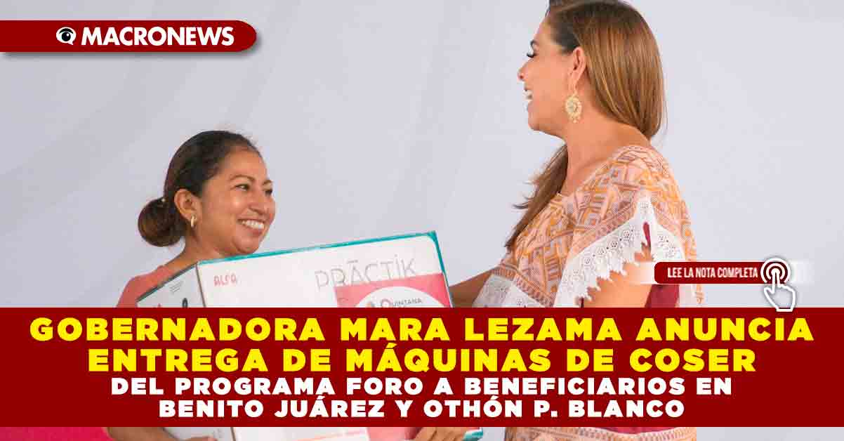 Redacción Macronews.- La gobernadora de Quintana Roo, Mara Lezama Espinosa, informó a través de sus redes sociales que este miércoles 10 de diciembre se realizará la entrega de máquinas de coser a beneficiarios del programa FORO en los municipios de Benito Juárez y Othón P. Blanco. La mandataria exhortó a las y los ciudadanos inscritos a acudir a los centros de distribución correspondientes para recoger el apoyo, que busca fortalecer la economía familiar y fomentar el autoempleo.