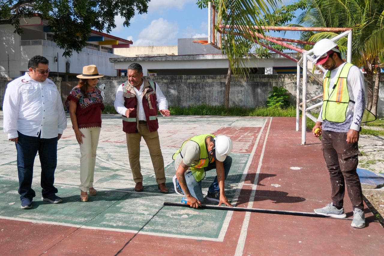 Cozumel.– La gobernadora Mara Lezama Espinosa, acompañada del presidente municipal José Luis Chacón, anunció la construcción de un paquete de 15 nuevos domos en escuelas en Cozumel, como parte del programa estatal para garantizar infraestructura educativa digna y proteger a niñas, niños y docentes de la exposición constante al sol y la lluvia.