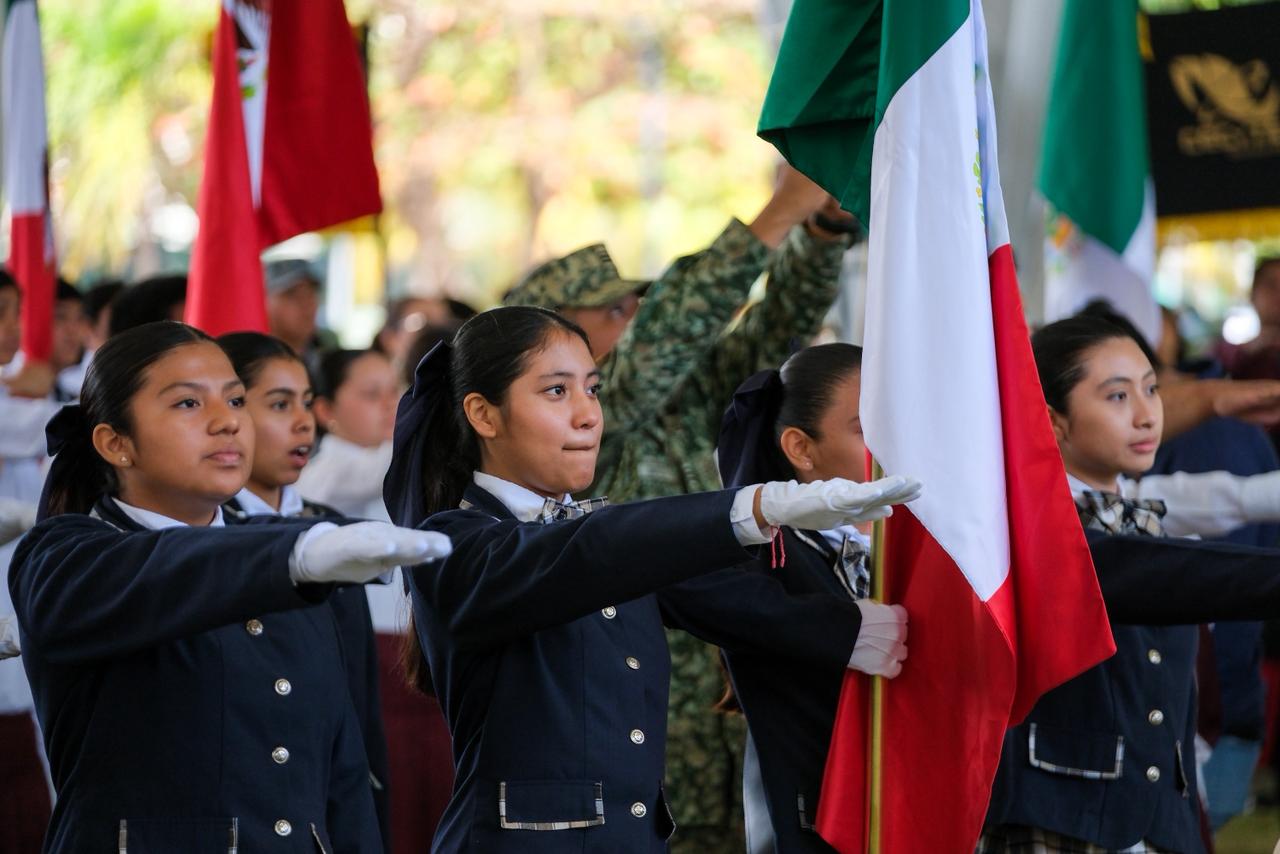 Previamente, el General de Brigada de Estado Mayor, Fidel Mondragón Rivero, comandante de la 34ª Zona Militar, expresó que respetar nuestros símbolos patrios es el gran código de las escuelas del país. Asimismo, destacó que nuestra Bandera Nacional ha ondeado en grandes momentos para México, desde encuentros deportivos, educativos, cívicos.