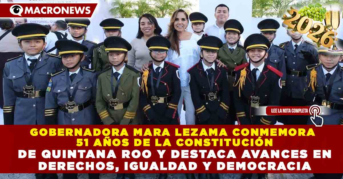 -Desde Chetumal, la gobernadora Mara Lezama encabezó la ceremonia cívica por el 51 aniversario de la promulgación de la Constitución estatal, destacando los avances en derechos humanos, igualdad, democracia y bienestar para las y los quintanarroenses