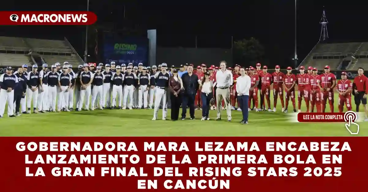 CANCÚN, Q. ROO. La gobernadora Mara Lezama Espinosa vivió una «noche histórica» al participar en el lanzamiento de la primera bola de la Gran Final del torneo Rising Stars 2025 de la Liga Mexicana de Beisbol (LMB) en el Estadio Beto Ávila.