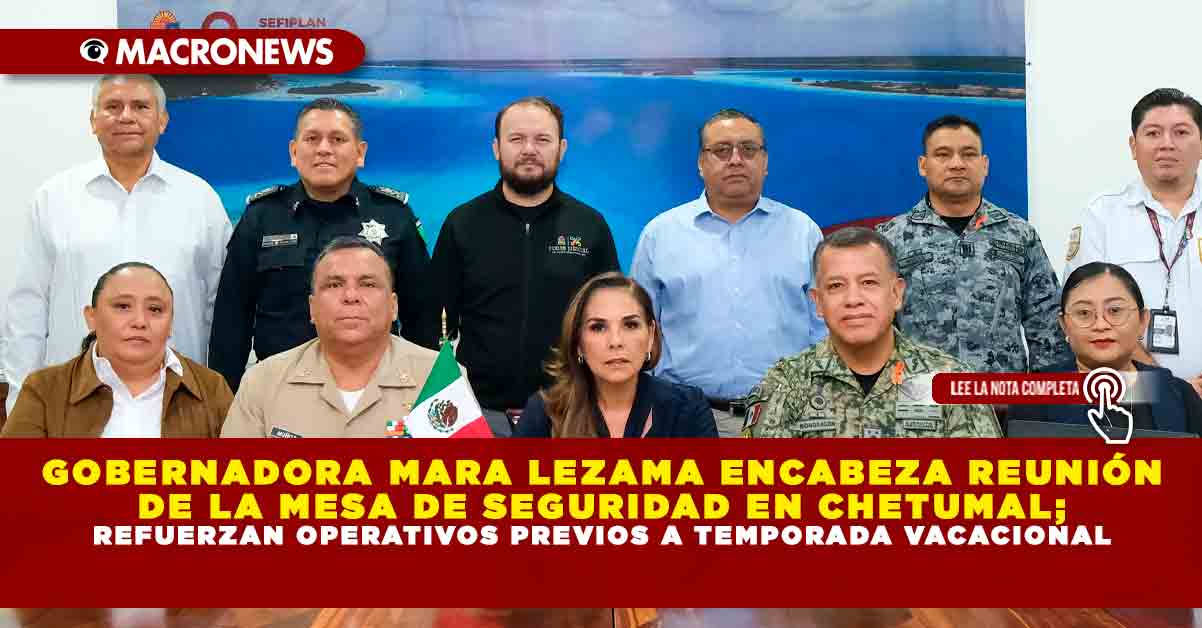 Redacción Macronews.- Desde la capital del estado, Chetumal, la gobernadora de Quintana Roo, Mara Lezama Espinosa, encabezó una reunión con las y los integrantes de la Mesa de Seguridad, con el propósito de fortalecer la coordinación interinstitucional y garantizar la paz en todo el territorio estatal. Durante el encuentro, se abordaron los operativos de vigilancia anticipados a la temporada vacacional de diciembre, con el objetivo de proteger a las familias quintanarroenses, así como a los visitantes y turistas que arriban a los destinos del Caribe Mexicano.