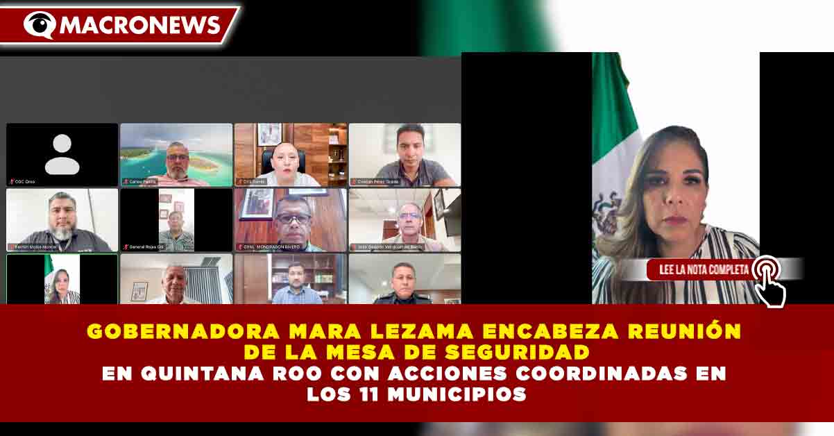 Redacción Macronews.- La gobernadora de Quintana Roo, Mara Lezama, sostuvo una reunión con las y los integrantes de la Mesa de Seguridad estatal, como parte del trabajo permanente y coordinado para fortalecer las acciones de construcción de paz en los 11 municipios de la entidad.