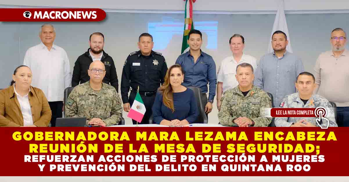 Redacción Macronews.- La gobernadora de Quintana Roo, Mara Lezama Espinosa, informó a través de sus redes sociales que sostuvo una reunión con las y los integrantes de la Mesa de Seguridad, con el objetivo de dar seguimiento puntual a las acciones que fortalecen la paz y la tranquilidad en todo el estado. En este encuentro, destacó que la prioridad es la protección de mujeres, niñas y adolescentes víctimas de violencia, así como la coordinación permanente entre los tres órdenes de gobierno para prevenir el delito y construir entornos más seguros.