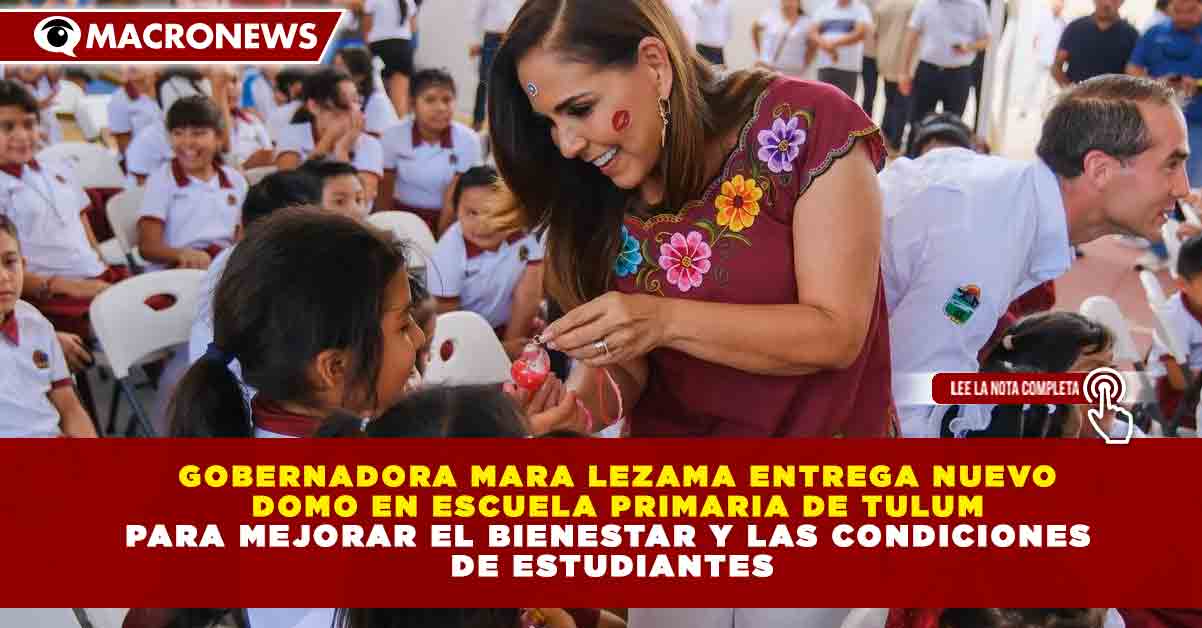 Redacción Macronews.- Con una inversión superior a 3 millones 315 mil pesos, el gobierno de Quintana Roo entregó un nuevo domo en la escuela primaria Tulum, infraestructura que beneficiará directamente a 502 alumnas y alumnos, quienes ahora cuentan con un espacio digno, seguro y funcional para sus actividades académicas, cívicas y recreativas.