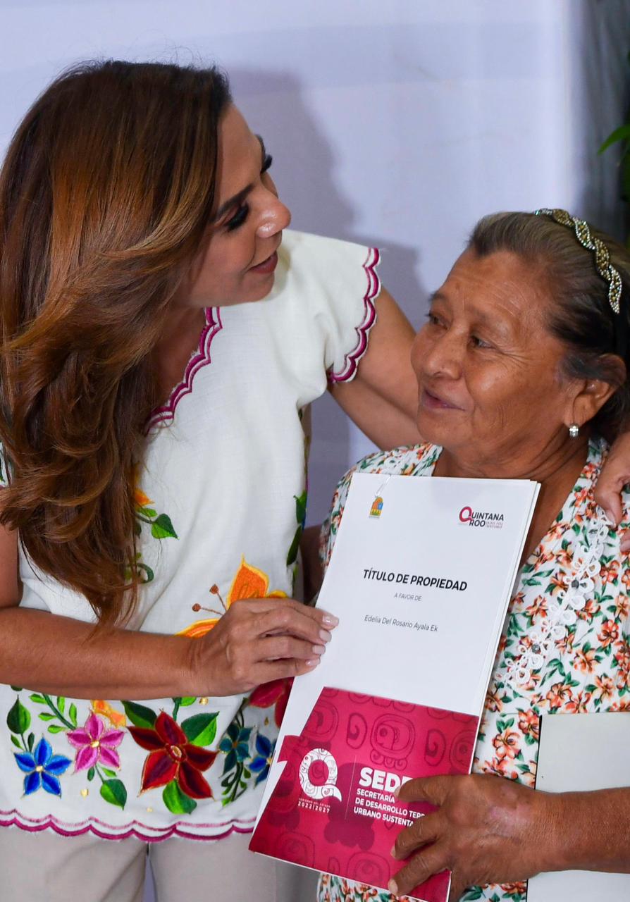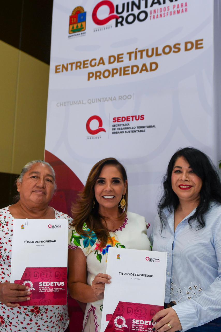 Chetumal.- A través de la Secretaría de Desarrollo Territorial Urbano Sustentable (SEDETUS), la gobernadora Mara Lezama Espinosa entregó 44 títulos de propiedad a beneficiarios y beneficiarias que esperaron largos años, algunos hasta más de 3 décadas para tener su documento.