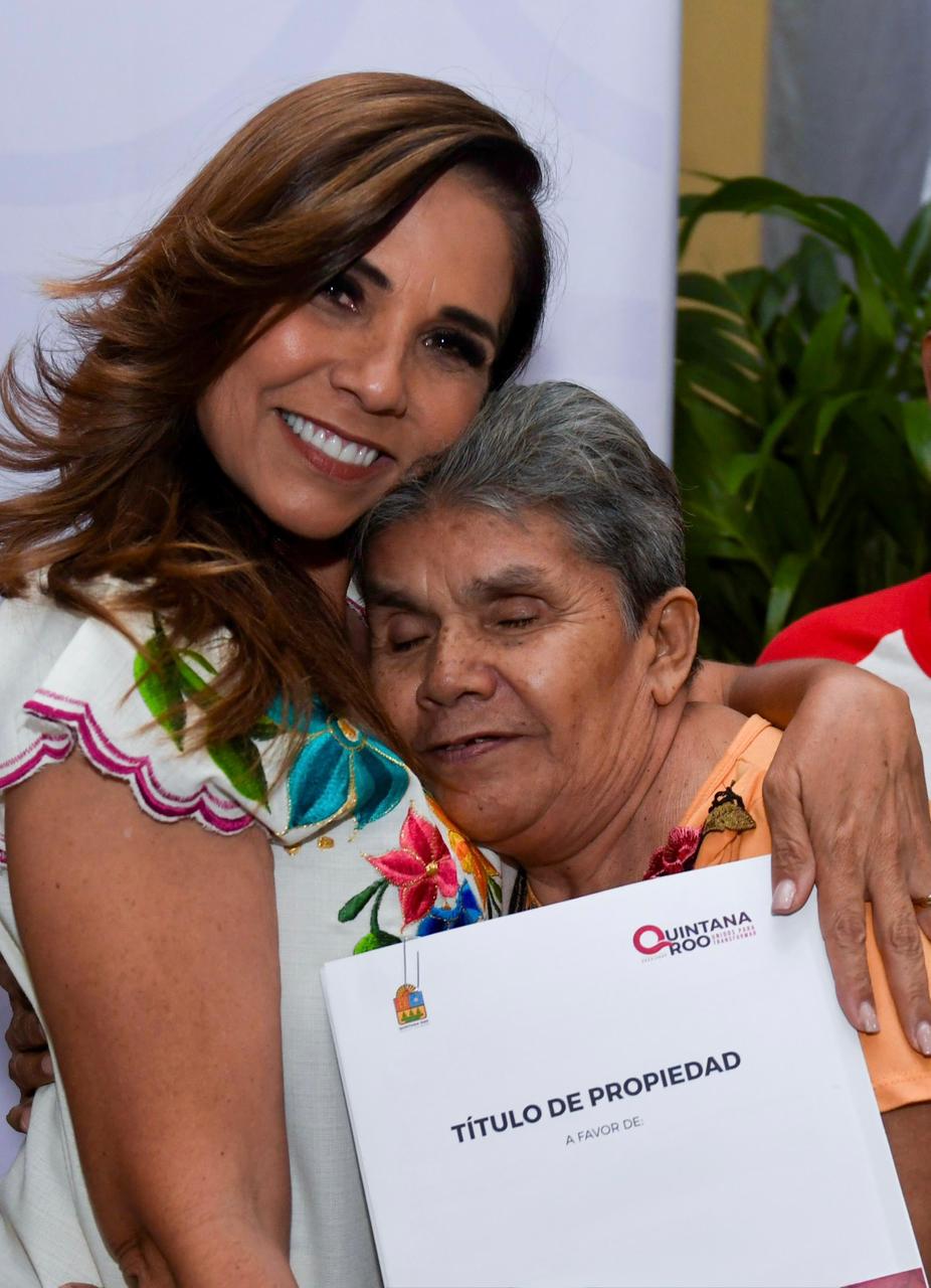 Estuvieron en el presídium, junto con Mara Lezama, las beneficiarias Elia Orozco Rodríguez, Elza María Varela Miranda; la presidenta municipal de Othón P. Blanco, Yensunni Martínez Hernández; y la directora general del Registro Público de la Propiedad y del Comercio, Mariann González Pliego Castillo.