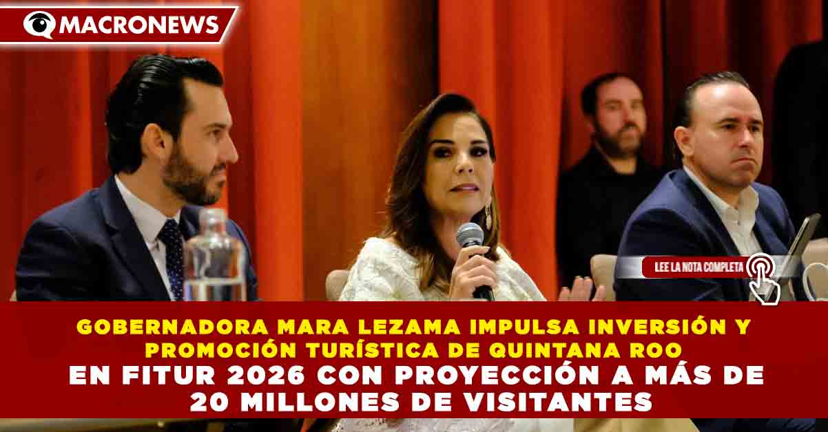 Redacción Macronews.- La gobernadora Mara Lezama Espinosa encabezó la estrategia de inversión y promoción turística de Quintana Roo en la Feria Internacional de Turismo (FITUR) 2026, uno de los eventos más importantes del sector a nivel mundial, con el objetivo de fortalecer la llegada de más de 20 millones de turistas anuales y consolidar al estado como líder turístico de México y América Latina.