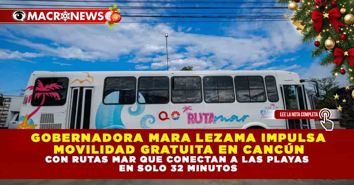 Redacción Macronews.- La gobernadora de Quintana Roo, Mara Lezama Espinosa, recordó a través de sus plataformas digitales que este fin de semana se mantiene vigente el programa #RutaMar en el municipio de Benito Juárez. Esta iniciativa tiene como objetivo facilitar que las familias de Cancún y visitantes logren arribar a los principales balnearios públicos de la zona hotelera de manera totalmente gratuita y bajo esquemas de seguridad garantizados.