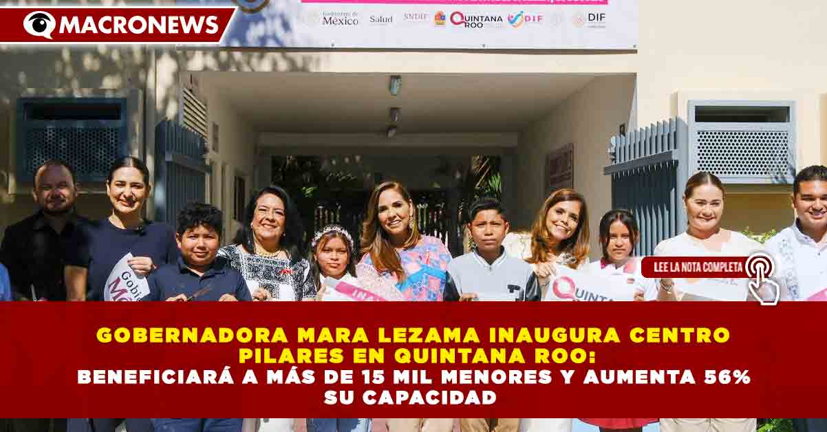 Redacción Macronews.- La gobernadora de Mara Lezama inauguró el segundo Centro de Desarrollo Comunitario (CDC) DIF Pilares en Quintana Roo, ubicado en la colonia 28 de Julio de Playa del Carmen, espacio que impactará a más de 15 mil niñas, niños y adolescentes y que incrementa en 56 por ciento su capacidad de atención tras una inversión cercana a 1.5 millones de pesos.