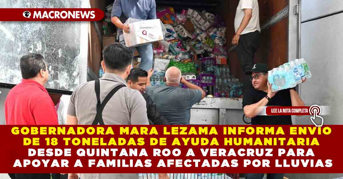 Redacción Macronews.- La gobernadora de Quintana Roo, Mara Lezama Espinosa, anunció el envío de las primeras 18 toneladas de ayuda humanitaria al estado de Veracruz, como parte de las acciones solidarias para apoyar a las familias afectadas por las intensas lluvias. Este esfuerzo refleja el compromiso del gobierno estatal con una política humanista y de atención inmediata ante emergencias climáticas.