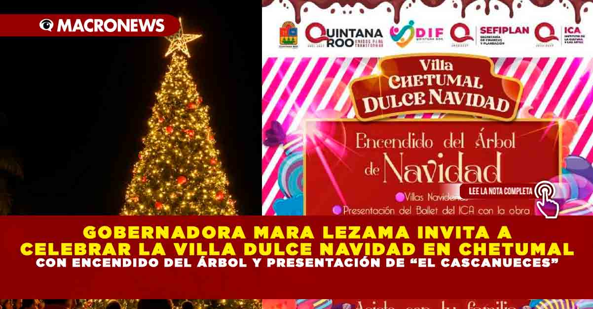 Redacción Macronews.- La gobernadora de Quintana Roo, Mara Lezama Espinosa, convocó a las familias de la capital a disfrutar de una tarde llena de magia, alegría e ilusión con motivo del encendido del Árbol de Navidad y la apertura de la Villa Dulce Navidad, este 1 de diciembre a las 17:30 horas en la Plaza Cívica del Palacio de Gobierno de Chetumal.