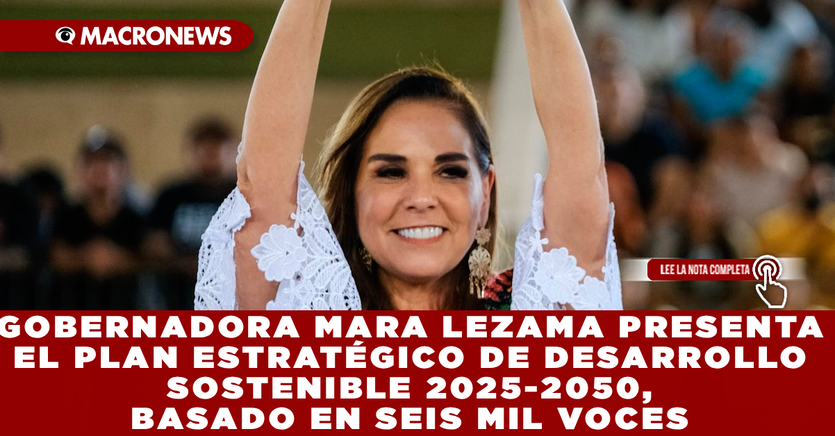 CHETUMAL, Q. ROO. La gobernadora Mara Lezama Espinosa presentó hoy el Plan Estratégico de Desarrollo Sostenible 2025-2050 para Quintana Roo, calificándolo como un «hecho histórico» que ofrece certeza y rumbo al estado con una visión de largo plazo.