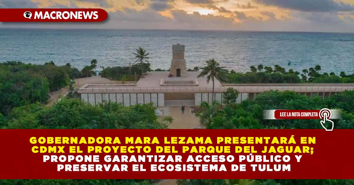 Redacción Macronews.- La gobernadora de Quintana Roo, Mara Lezama Espinosa, anunció que este lunes viajará a la Ciudad de México para presentar ante la Secretaría de Turismo federal el proyecto integral del Parque Nacional del Jaguar, ubicado en Tulum. La iniciativa tiene como objetivo preservar el acceso público a las playas, proteger el ecosistema costero y consolidar un modelo turístico sustentable e inclusivo. La reunión será encabezada por la secretaria Josefina Rodríguez Zamora y contará con el respaldo de la presidenta Claudia Sheinbaum Pardo.