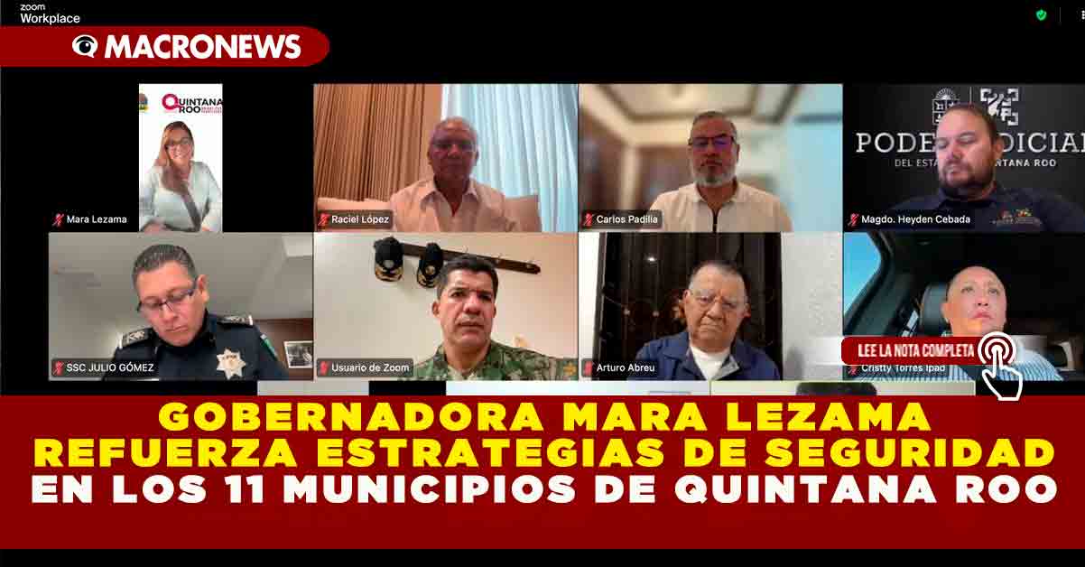Redacción Macronews.- La gobernadora de Quintana Roo, Mara Lezama Espinosa, informó a través de sus redes sociales que, como parte de su agenda diaria, sostuvo una reunión con los integrantes de la Mesa de Seguridad estatal, en coordinación con autoridades de los tres órdenes de gobierno. El objetivo fue revisar los avances de las estrategias implementadas en todo el estado para la prevención del delito y la violencia.