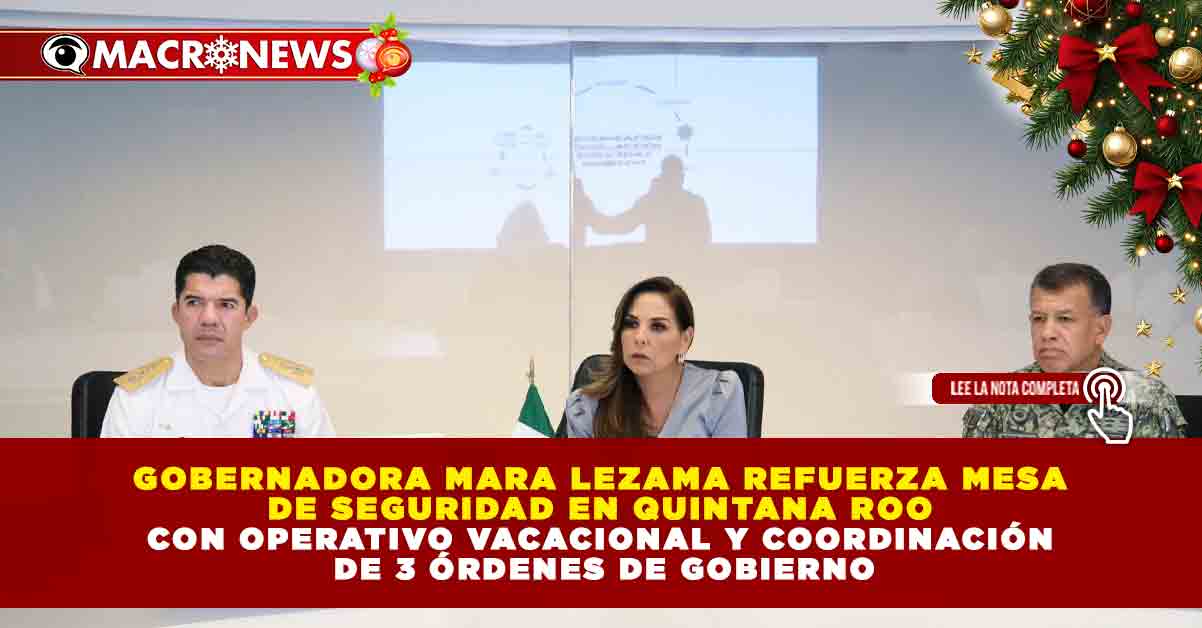 Redacción Macronews.- La gobernadora de Quintana Roo, Mara Lezama Espinosa, informó que sostuvo una reunión con las y los integrantes de la Mesa de Seguridad estatal para fortalecer la coordinación entre los tres órdenes de gobierno y la Fiscalía General del Estado, con el objetivo de atender de manera prioritaria a objetivos estratégicos y reforzar las acciones de seguridad durante el actual periodo vacacional.