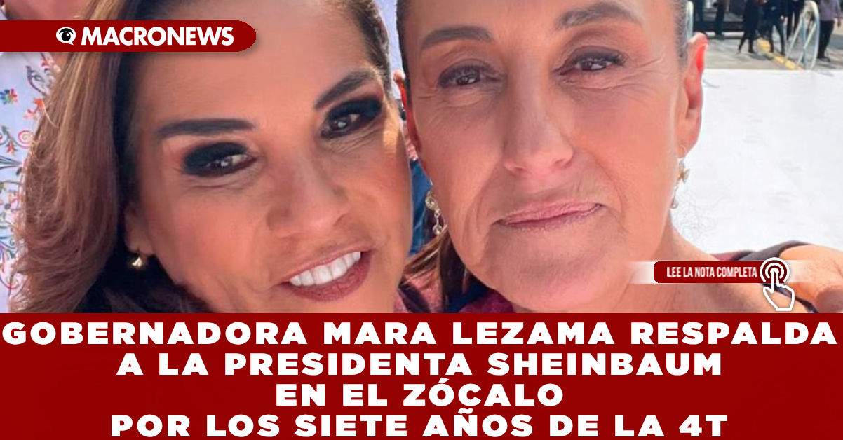 GOBERNADORA MARA LEZAMA RESPALDA A LA PRESIDENTA SHEINBAUM EN EL ZÓCALO POR LOS SIETE AÑOS DE LA 4T