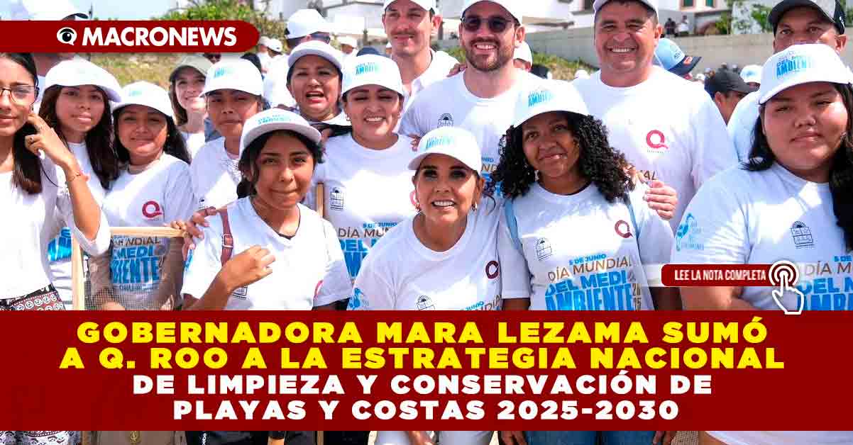 Punta Brava.- Desde Playa Punta Brava, en Puerto Morelos, y con la presencia de la Procuradora Federal de Protección al Ambiente, Mariana Boy Tamborrell, la gobernadora Mara Lezama Espinosa sumó a Quintana Roo al arranque de la Estrategia Nacional de Limpieza y Conservación de Playas y Costas 2025-2030 impulsada por la Presidenta Claudia Sheinbaum Pardo.