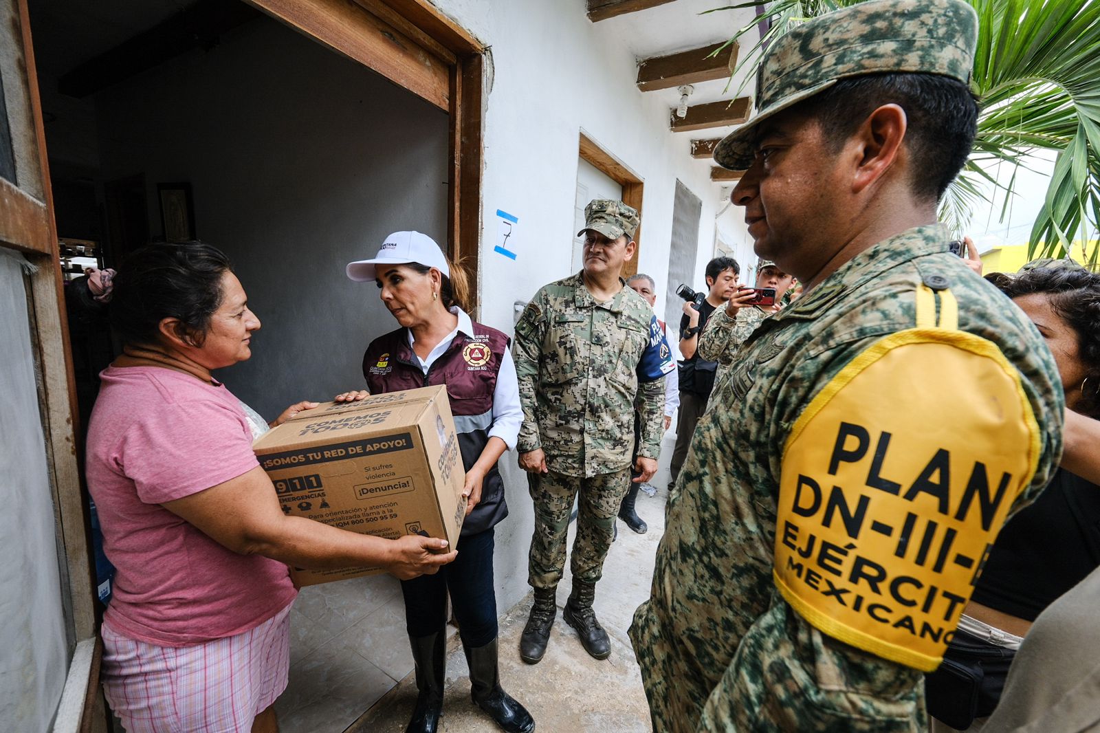 También, el coronel de infantería DEM Jaime Contreras Limón, comandante del 64 Batallón de Infantería de Benito Juárez; contralmirante IMP DEM Rafael Álvarez Eguializ, de la Secretaría de Marina; el comisario Israel Noé Castillo Pérez, coordinador estatal de la Guardia Nacional; el presidente municipal Orlando Emir Bellos Tun.