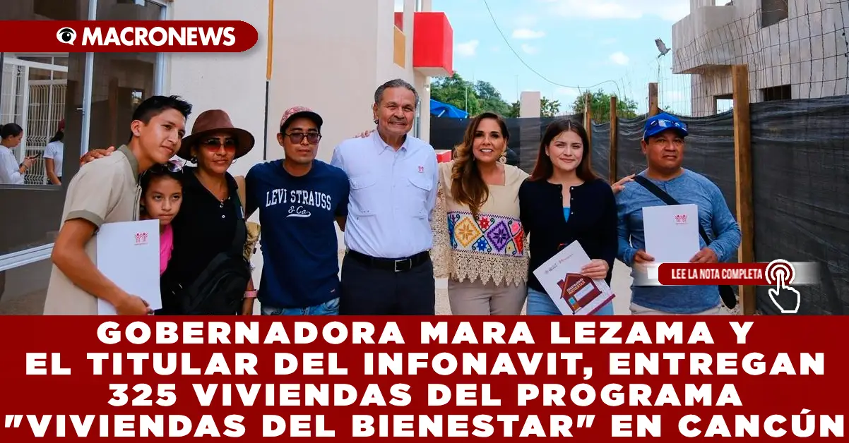 CANCÚN, Q. ROO. La gobernadora Mara Lezama Espinosa, acompañada por el titular del INFONAVIT, Octavio Romero Oropeza, realizó la entrega de un total de 325 viviendas del programa «Viviendas del Bienestar» en la ciudad de Cancún, marcando un avance significativo en la atención a la deuda social de vivienda en el estado.