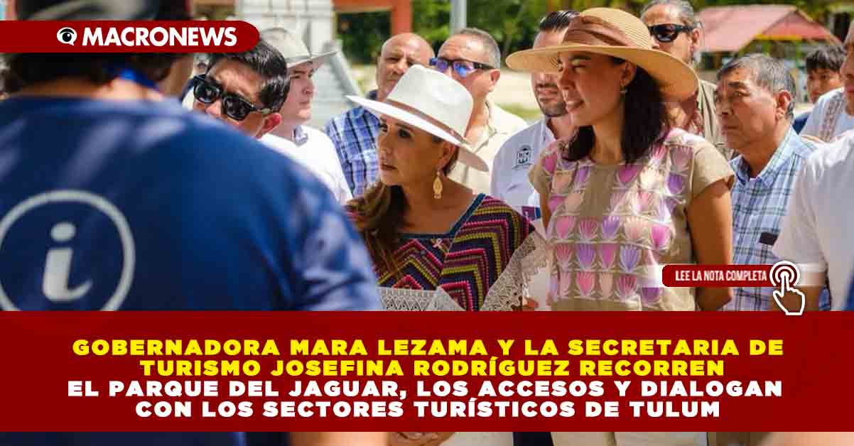 Tulum.- La gobernadora Mara Lezama Espinosa y la secretaria de Turismo Josefina Rodríguez Zamora realizaron una gira de trabajo por Tulum en donde escucharon, atendieron y respondieron a hoteleros en reunión de trabajo, encabezaron el Primer Foro de Turismo Comunitario, promovido por la Comisión de Turismo del Senado de la República dentro del marco del Pacto Legislativo por el Turismo Nacional, y recorrieron el Parque del Jaguar.