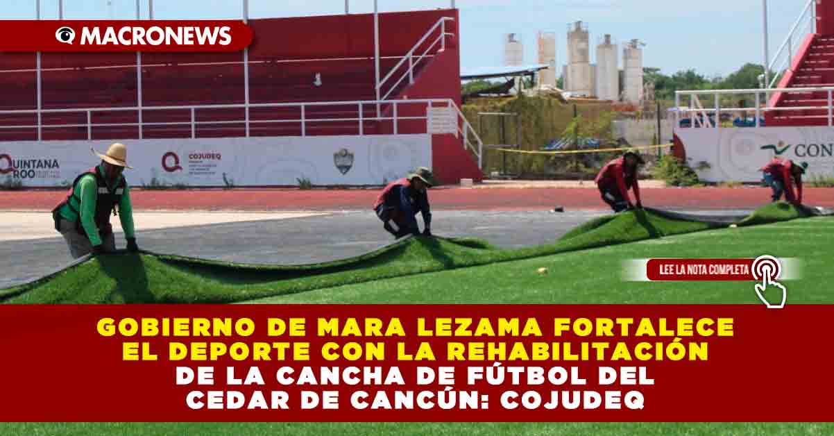 Explicó que mediante el Nuevo Acuerdo por el Bienestar y Desarrollo de Quintana Roo, que promueve la primera mujer gobernadora Mara Lezama, se escucharon las peticiones de los habitantes de la ciudad de Cancún y sus deportistas, quienes solicitaron la rehabilitación de la cancha de futbol CEDAR, obra que actualmente se está materializando.
