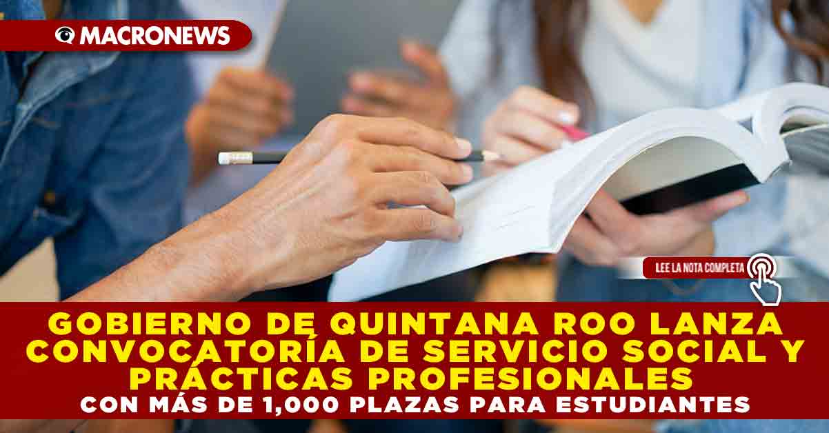 Redacción Macronews.- El Gobierno del Estado de Quintana Roo lanzó una convocatoria con más de 1 000 oportunidades para que estudiantes realicen su servicio social, práctica profesional, residencia o estadía en dependencias estatales, a fin de impulsar la formación de talento y fortalecer el desempeño público. La inscripción ya está abierta para todos los niveles educativos que cumplan con los requisitos establecidos.